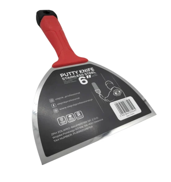 Olejnik Шпатель малярный закал.нерж.сталь пласт. ручкой, лезвие 1,22-0,4 мм, 150 мм