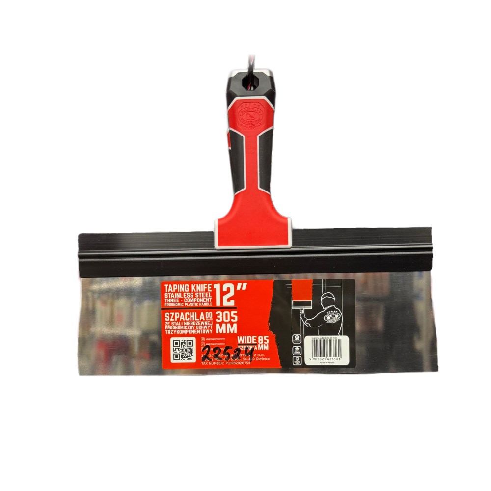 Шпатель Olejnik TAPING KNIFE 12″ (≈305 мм) широко применяется при монтажных и отделочных работах для заделки стыков, углов и швов, а также для нанесения шпаклёвки на небольшие и средние участки поверхности.