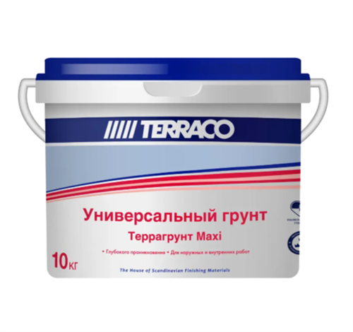 Грунтовка универсальная Terraco Террагрунт Maxi может использоваться для обработки бетонных, гипсовых, кирпичных, газобетонных, оштукатуренных поверхностей. Наносится перед финишным покрытием, применением ремонтных и клеевых составов.