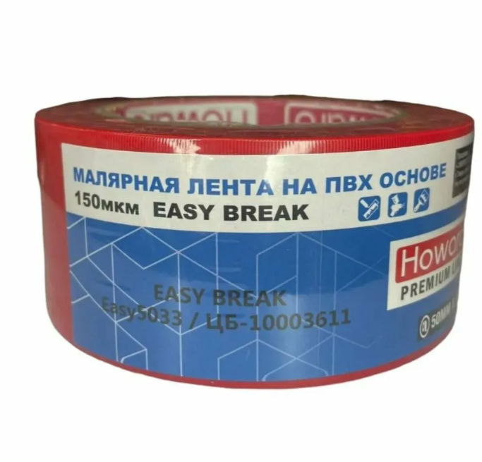 HOWARD Малярная клейкая лента ПВХ EASY BREAK предназначена для малярных, реставрационных и отделочных работ, где требуется чёткая линия окраски и прочная фиксация.