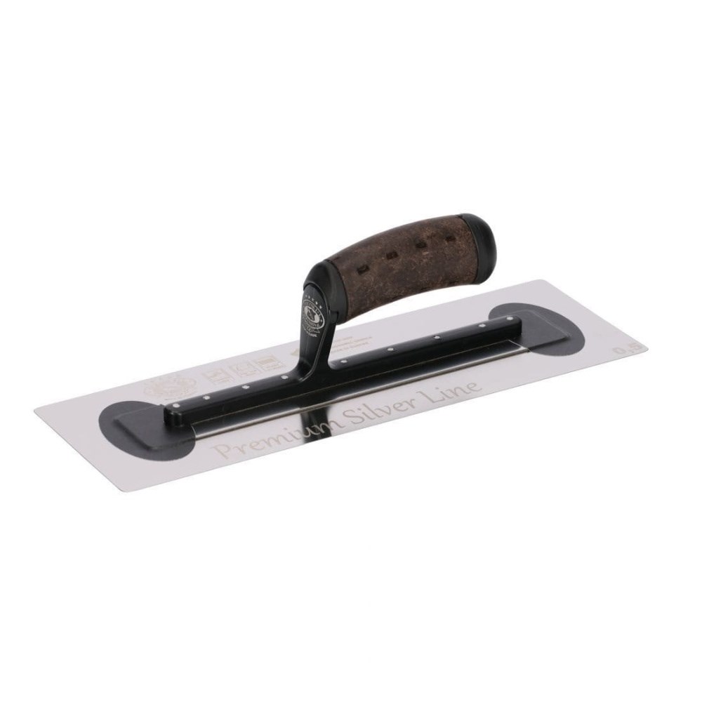 Особенностью данной модели является эргономичная кожаная ручка, которая обеспечивает удобный и надежный захват, снижает усталость рук при длительной работе и улучшает контроль инструмента при сложных операциях. Кожа приятно ощущается в руке и хорошо прилегает, что особенно важно при продолжительной отделке стен или потолков.