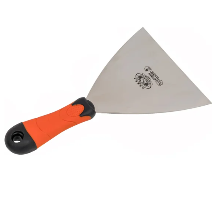 Шпатель Olejnik нержавеющий малярный Bitem, 150 мм — высококачественный отделочный инструмент, предназначенный для выполнения широкого спектра малярных и шпаклёвочных работ: выравнивания слоёв шпаклёвки, заделки трещин, сглаживания неровностей и маскировки швов между листами гипсокартона. Рабочее полотно изготовлено из нержавеющей стали, что обеспечивает устойчивость к коррозии, долговечность и лёгкость очистки после работы.