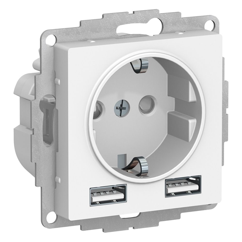 Schneider Electric AtlasDesign Розетка 16А с 2 USB A+A, 5В/2,4А, 2х5В/1,2А (белый)