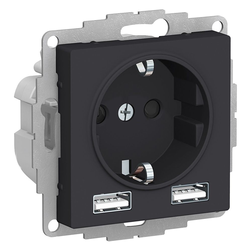 Schneider Electric AtlasDesign Розетка 16А с 2 USB A+A, 5В/2,4А, 2х5В/1,2А (карбон)