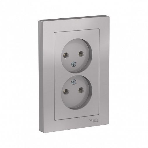 Schneider Electric AtlasDesign Розетка двойная с рамкой без заземления, 16А (алюминий)