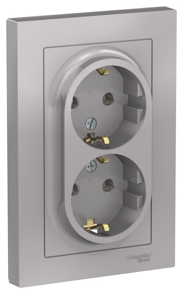 Schneider Electric AtlasDesign Розетка двойная с рамкой с заземлением (алюминий)