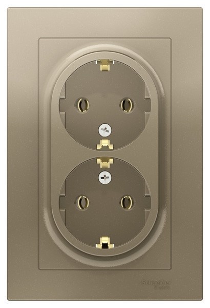 Schneider Electric AtlasDesign Розетка двойная с рамкой с заземлением (шампань)