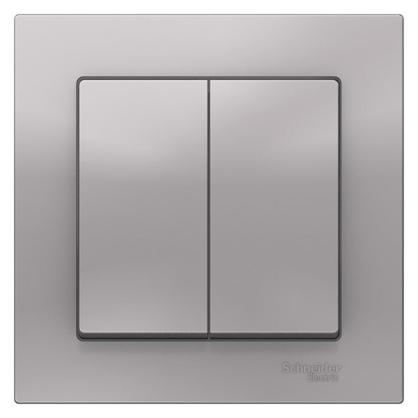 Schneider Electric AtlasDesign Выключатель с рамкой 2-клавишный, 10А (алюминий)