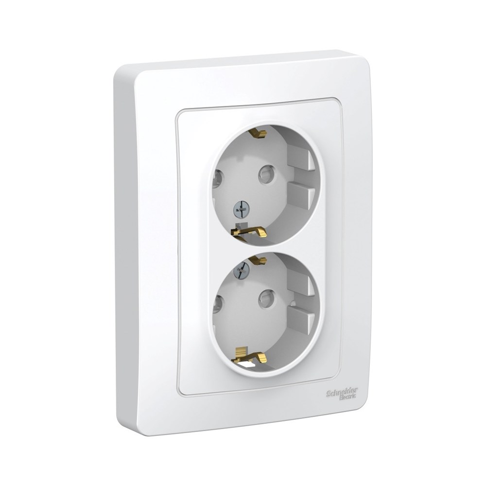 Розетка двойная Systeme (Schneider) Electric Blanca скрытой установки предназначена для сетей до 250 В, на ток до 16 А. Двухместная розетка позволяет подключить два устройства в одном месте. Шторки и заземление обеспечивают дополнительную безопасность при косвенном прикосновении. Рамка в комплекте. Используется для подключения бытовых нагрузок к сети переменного тока.