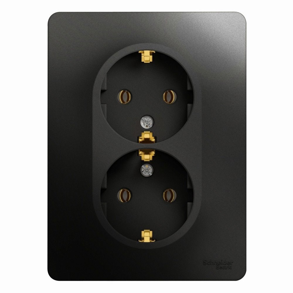 Schneider Electric Glossa Розетка двойная с заземлением без шторок, 16А (антрацит)