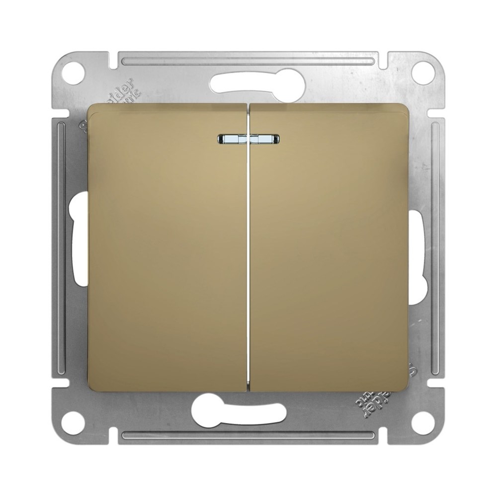 Schneider Electric Glossa Выключатель 2-клавишный с подсветкой, 10А (титан)