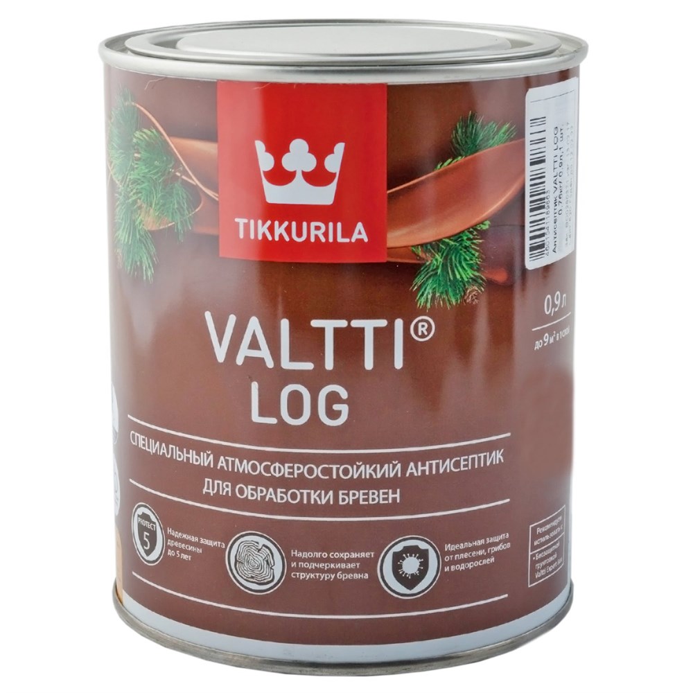 Tikkurila Valtti Log — это декоративно-защитный антисептик для наружной обработки древесины, специально разработанный для защиты деревянных поверхностей, включая брёвна, брусья, вагонку и строганые доски. Он образует диффузно-полупрозрачное покрытие, которое глубоко проникает в древесину и замедляет разрушительное воздействие влаги, гнили, синевы и плесени, при этом подчёркивая естественную красоту структуры дерева.