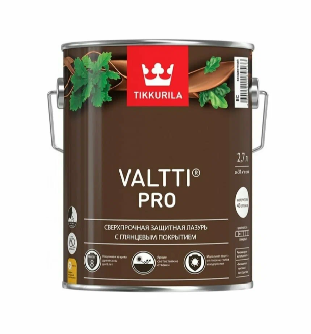 Valtti Pro — это наружный декоративно-защитный антисептик-лазурь для деревянных поверхностей от бренда Tikkurila (часто называют Тиккурила Валтти Про). Этот продукт создаёт атмосферостойкое, полупрозрачное покрытие с глянцевым блеском, которое наполняет древесину защитой и декоративным эффектом одновременно.