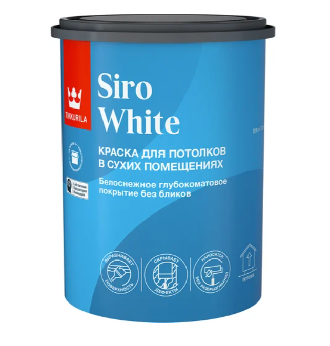 TIKKIVALA Краска для потолка SIRO WHITE, глубокомат., база А, 0,9 л