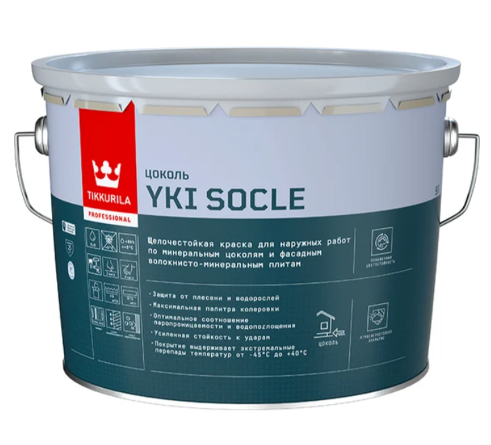 Tikkurila Yki Socle — это высококачественная водно-дисперсионная матовая краска для цоколя, созданная для наружной окраски бетонных цоколей, цоколей на цементной основе и фасадных волокнисто-минеральных плит. Покрытие устойчиво к щелочам, атмосферным воздействиям, влаге и механическим нагрузкам, что делает её особенно подходящей для защиты нижней части фасада перед декоративным оформлением здания.