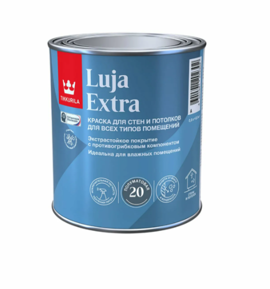 Tikkurila Luja Extra — это водно-дисперсионная акриловая интерьерная краска с матовым финишем, разработанная для помещений с повышенной эксплуатационной нагрузкой и влажностью. Краска входит в линейку сверхстойких продуктов Luja, отличающихся максимальной устойчивостью к мытью, истиранию и влажному трению, при этом создавая прочное и долговечное покрытие на стенах и потолках.