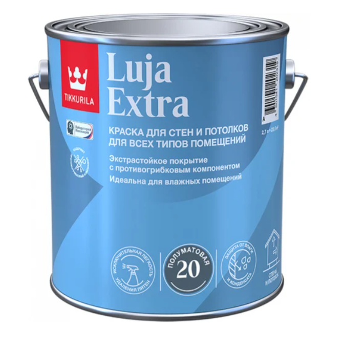 Tikkurila Luja 20 — это водно-дисперсионная акриловая краска с повышенной устойчивостью к износу, мытью и влажности, предназначенная для окраски стен и потолков внутри помещений, где требуется долговечное и легко очищаемое покрытие.