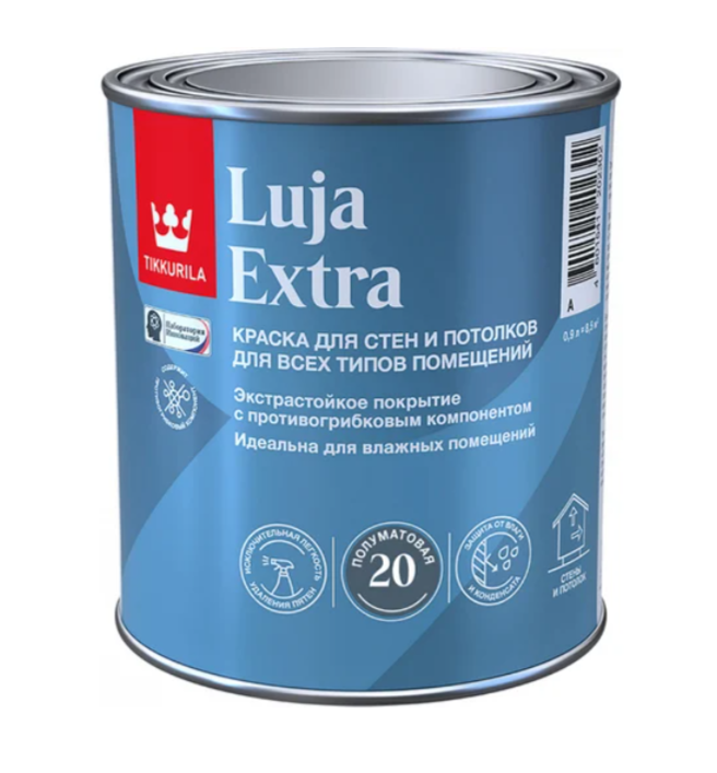 Tikkurila Luja 20 — это водно-дисперсионная акриловая краска с повышенной устойчивостью к износу, мытью и влажности, предназначенная для окраски стен и потолков внутри помещений, где требуется долговечное и легко очищаемое покрытие.