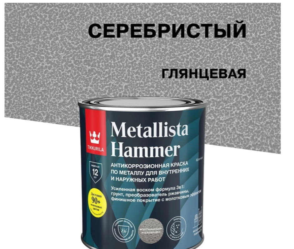 TIKKIVALA Краска METALLISTA HAMMER молотковая серебристая глянц., 2,3 л