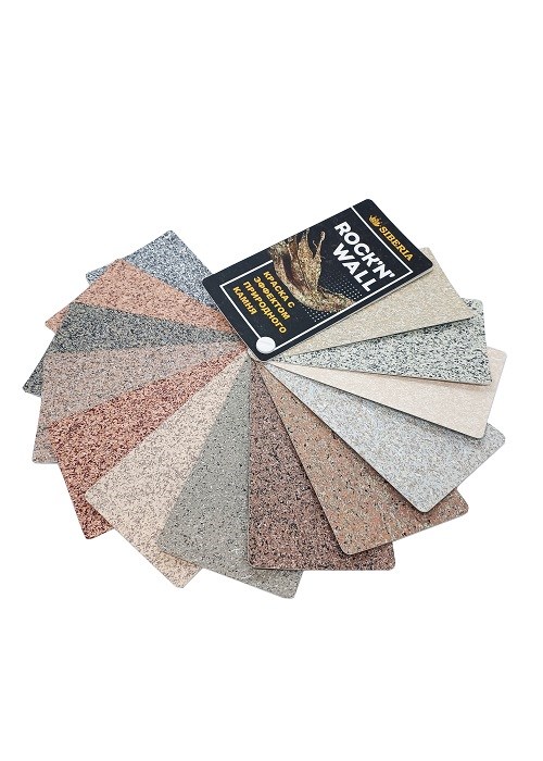 Веер Siberia Rock’n’Wall — образцы цветов (14 шт) — профессиональный веер-каталог с реальными фрагментами окрашенных и текстурированных образцов. В набор входят 14 различных цветовых образцов, соответствующих ключевым оттенкам серии Rock’n’Wall.