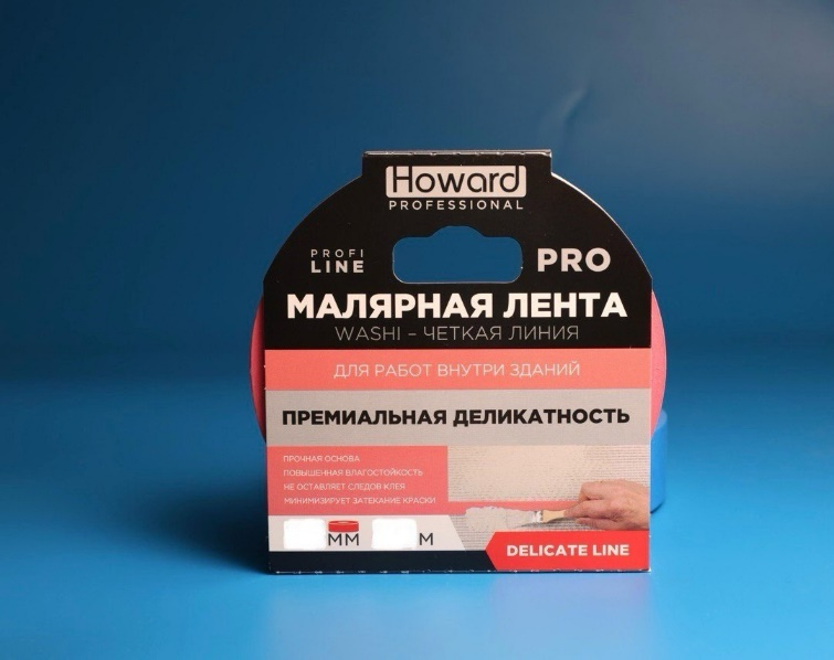 HOWARD Малярная лента WASHI "Чёткий край" — профессиональная малярная лента из японской бумаги Washi с улучшенным клеевым слоем, разработанная для точной покраски и аккуратной отделки внутри помещений.