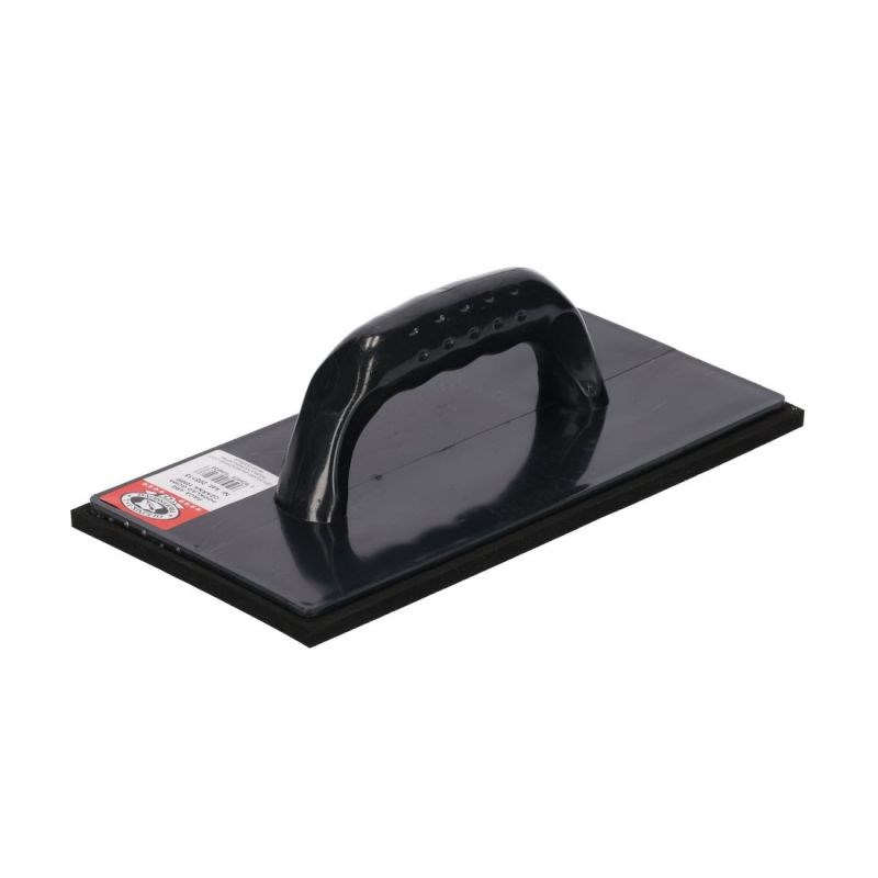Эта тёрка сочетает прочность пластикового основания и эластичность чёрной резиновой кромки, что делает её удобной для работы с различными строительными растворами.