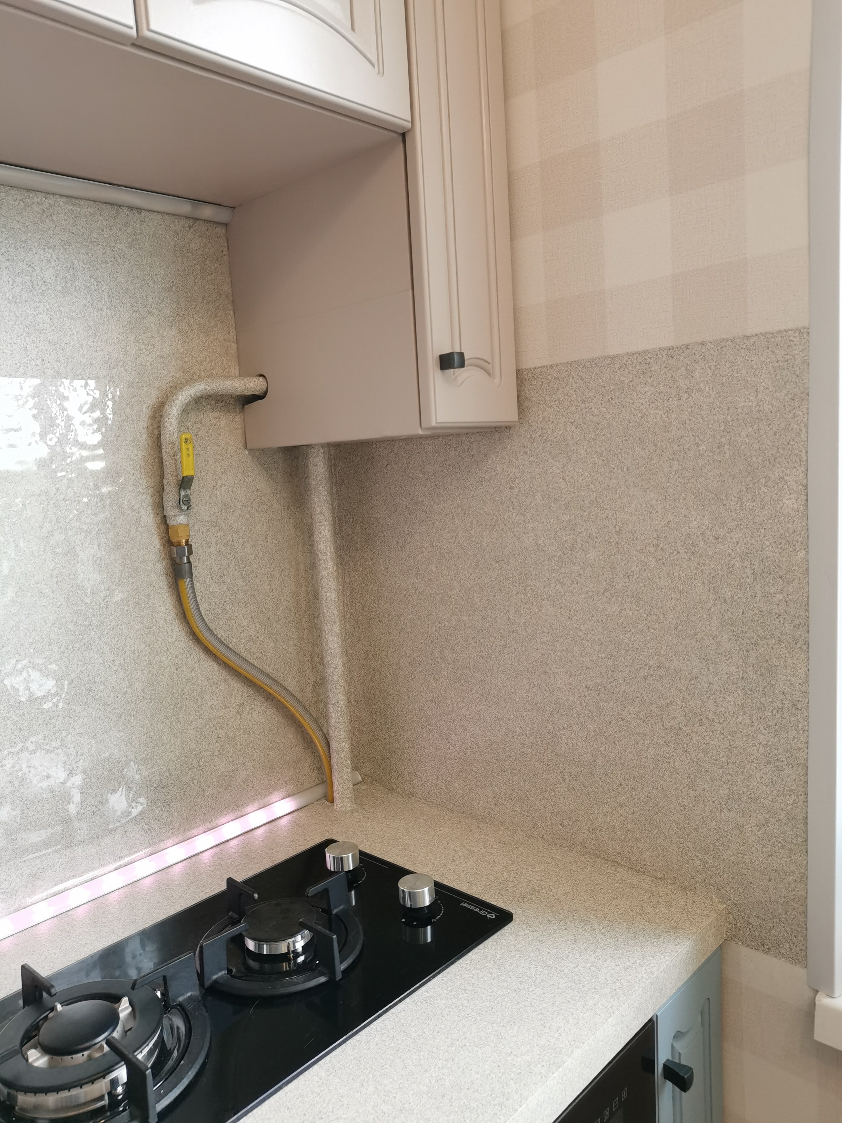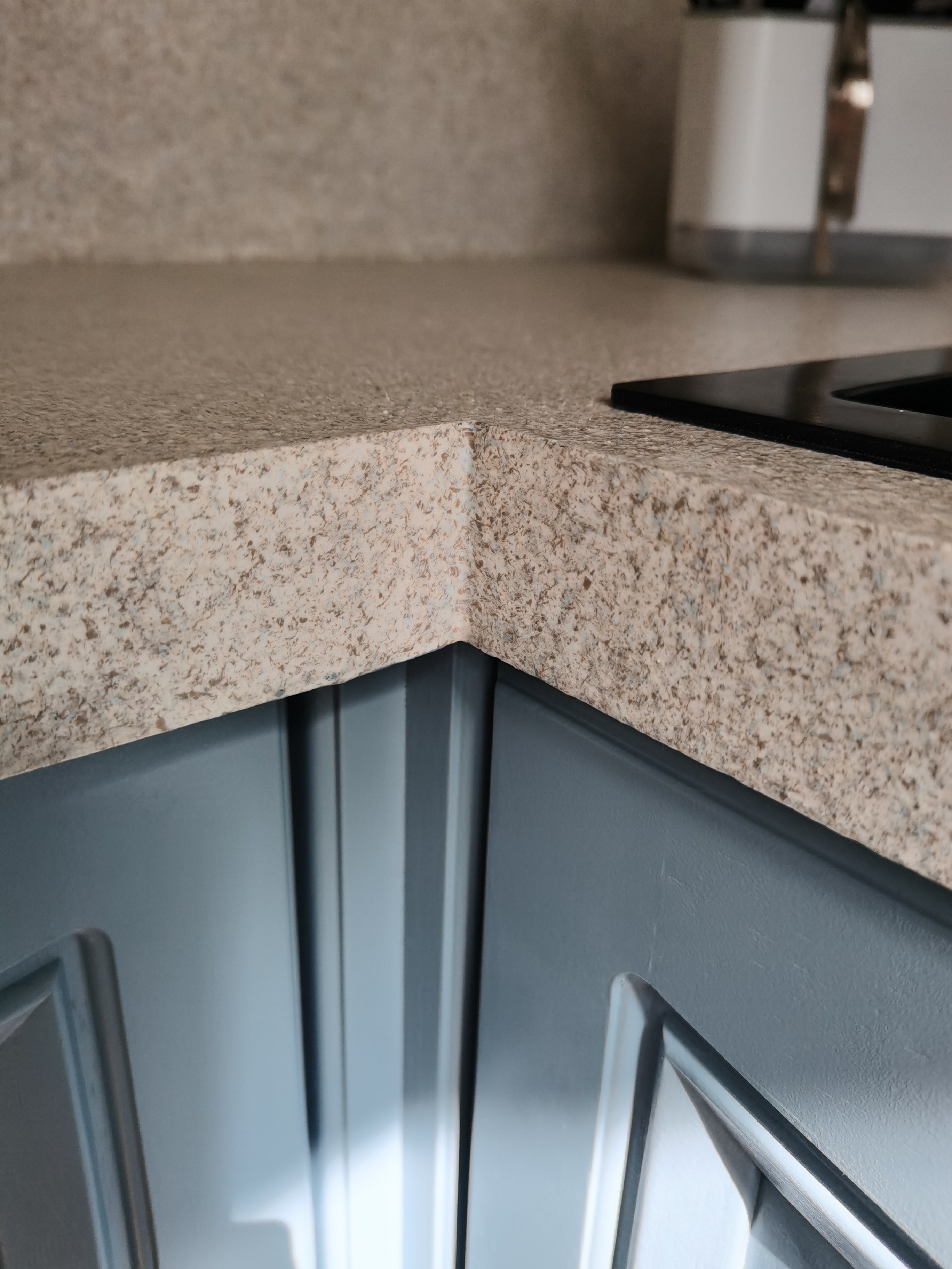 На столешницу и стеновую панель почти ~3.5-4 кв.м ушла банка праймера, большая банка краски и банка лака. Все красилось в 3 слоя. Лак после высыхания дал небольшой желтоватый оттенок. 3й слой был скорее всего лишним по цвету, но надеюсь не лишним для прочности.