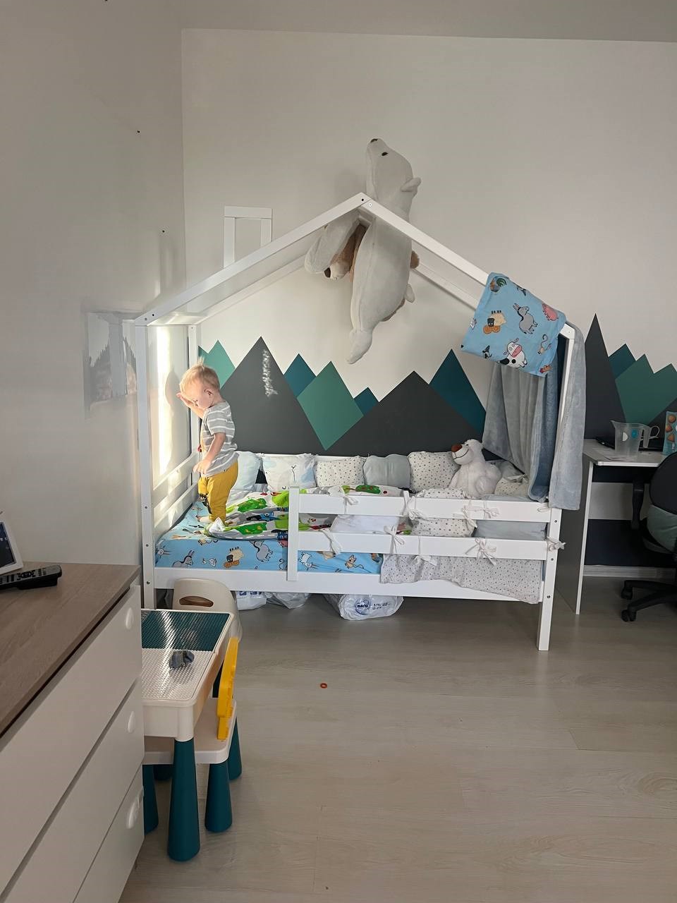 Купила мятную, серую и чёрную краску. Первый раз красила, всё получилось — нанесла в 2 слоя по инструкции. Ждала 7 дней до полного высыхания, тестировала через сутки после второго слоя. Результат превзошёл ожидания! Цвета отлично смешиваются — например, мятный с чёрным даёт красивый бирюзовый. Ребёнку нравится рисовать, всё легко стирается. Краска супер!