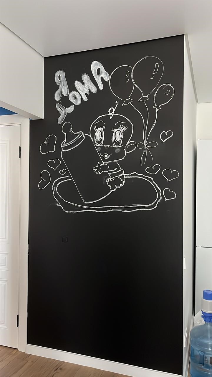 Купили грифельную краску, покрасили в гостиной стену. Каждый праздник украшаем красивыми надписями и картинками. Наносили все по инструкции, проблем не было. Без запаха, в чем огромный плюс. Рекомендую к покупке!!