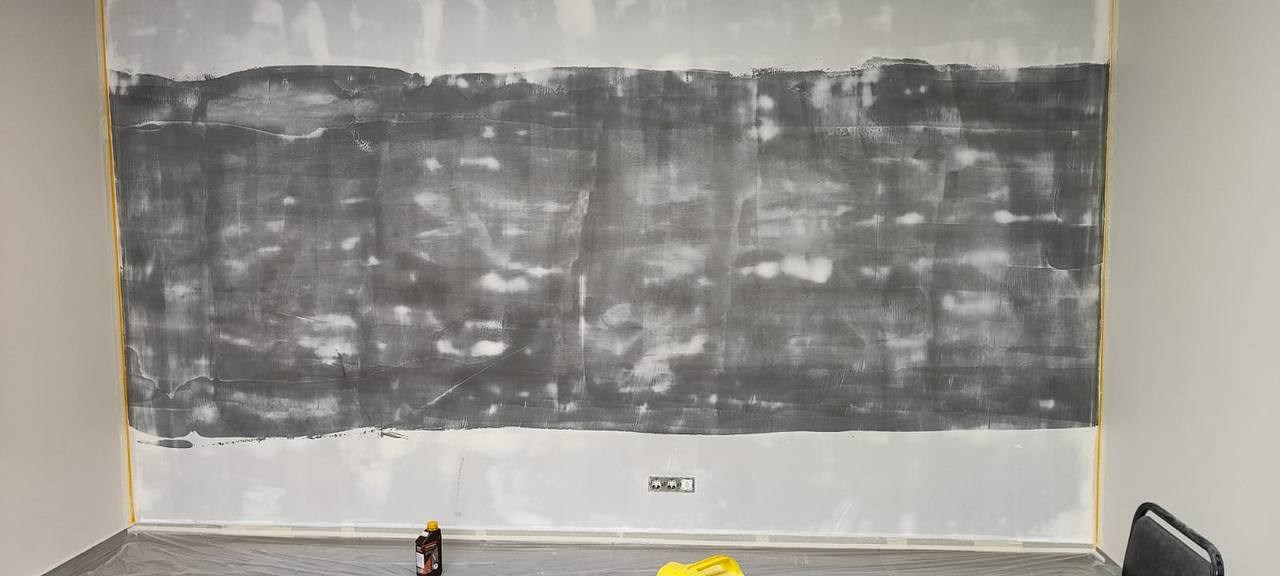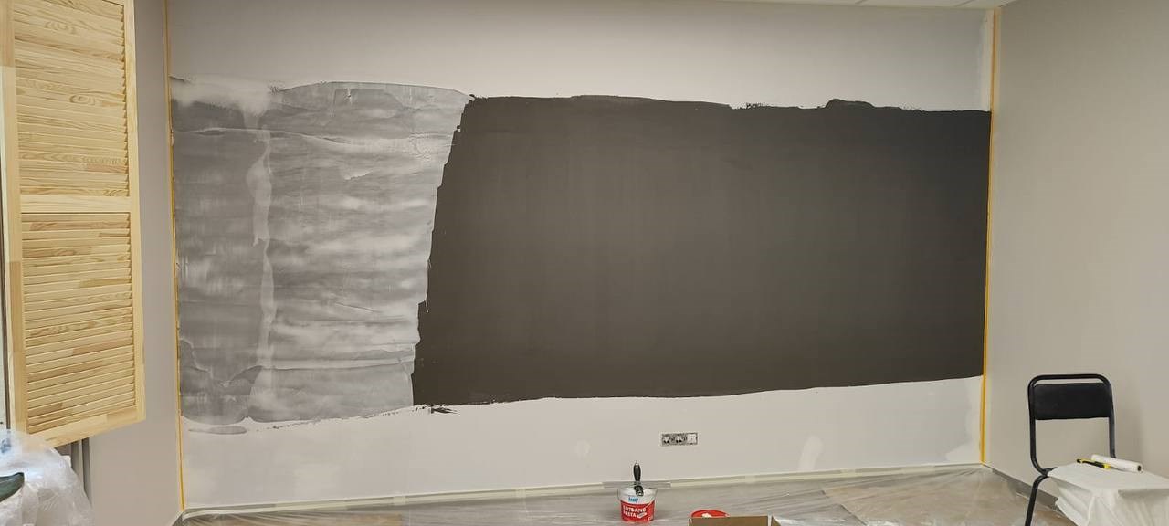 Сделал магнитную стену в офисе. Грунт намазал в два слоя шпателем, как положено — держится нормально, магниты липнут будь здоров. Потом прошёлся финишной шпаклёвкой, выровнял всё как надо, теперь будем красить интерьерной краской. Штука рабочая, рекомендую.