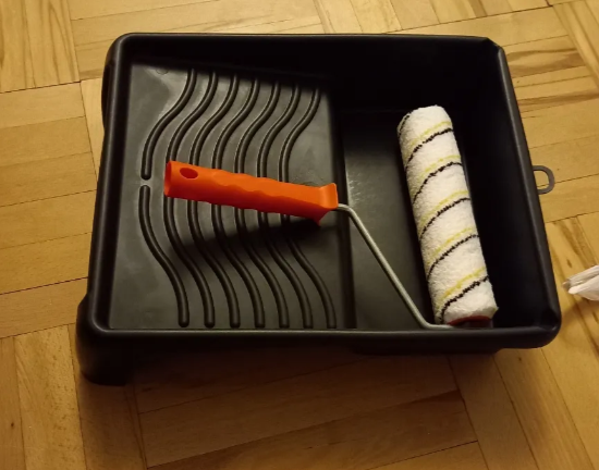 Краска непростая. Подойдет для новичков, тк всё, что умели и красили раньше можно забыть ). Необычная консистенция, напоминает сметану 15-20%. Наносится структурным валиком, но это только на ровные и гладкие поверхности. А вот в стыках и углах пришлось экспериментировать. Для углов подошла черная губка для посуды с жестким слоем как у валика, а еще лучше, быстрее и с минимальным расходом, просто рукой в медицинской перчатке похлопывающими движениями.