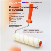 DECOR Валик малярный из полиамида с рукояткой, 100 мм