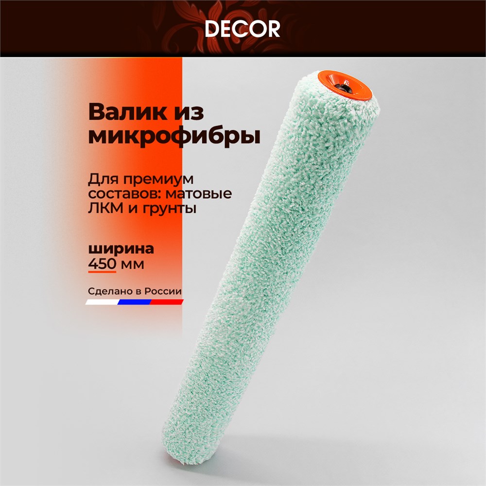 Валик DECOR из премиум микрофибры, длиной 450 мм, специально разработан для работы с шероховатыми поверхностями и с матовыми лакокрасочными материалами (ЛКМ) и с подготовительным слоем.